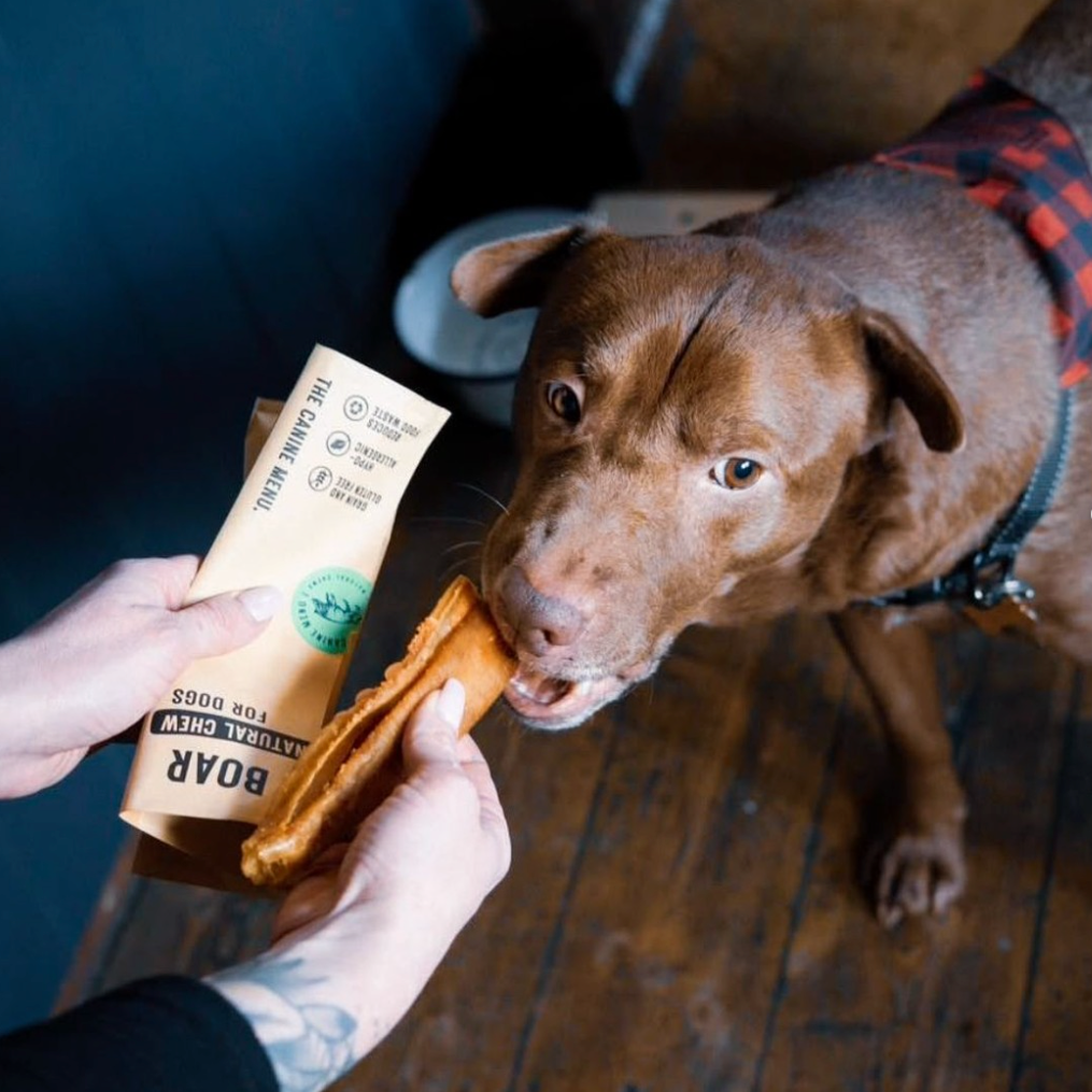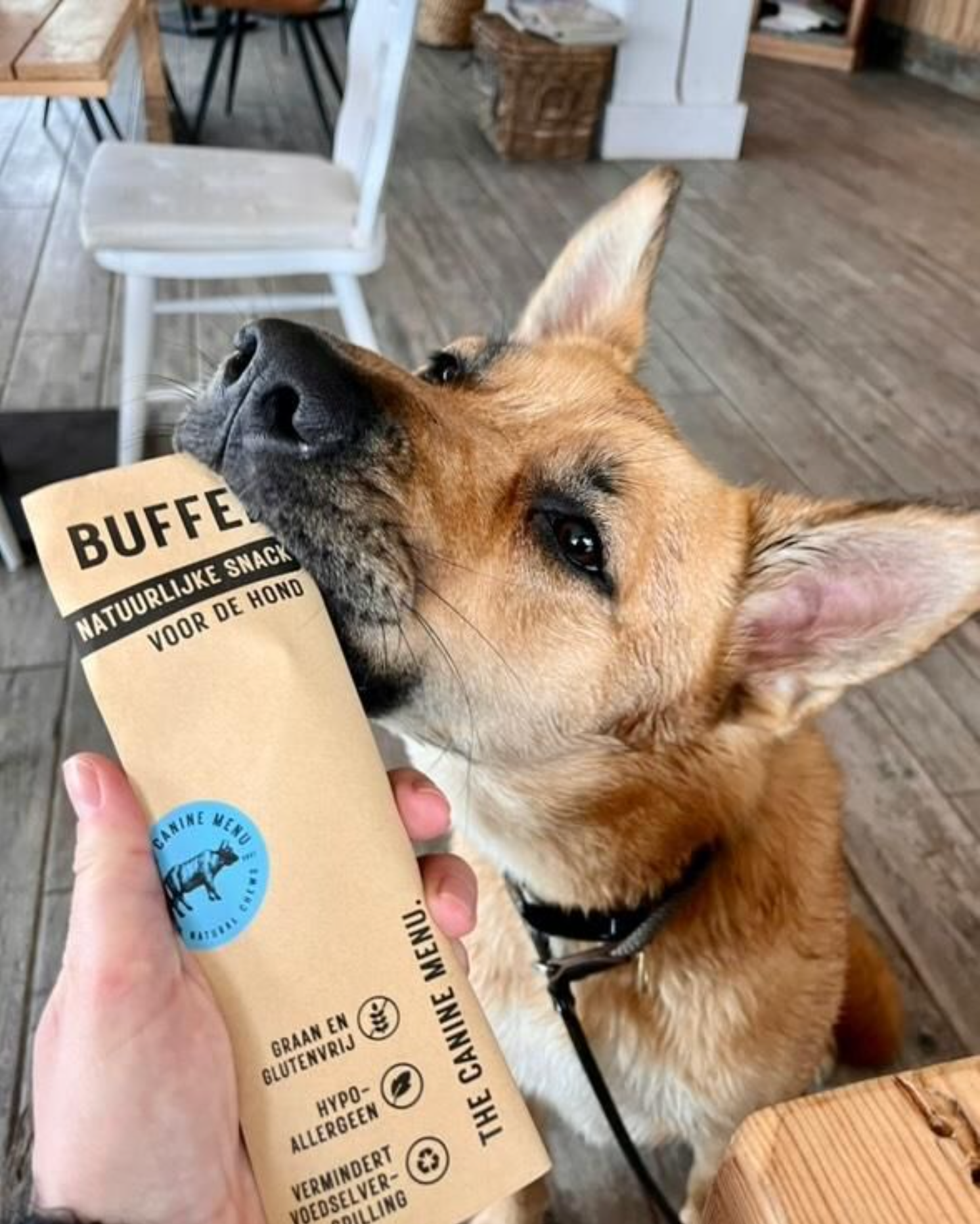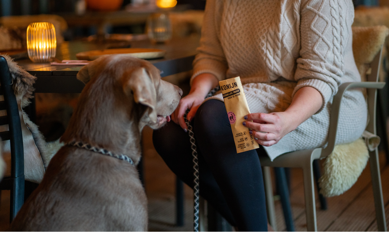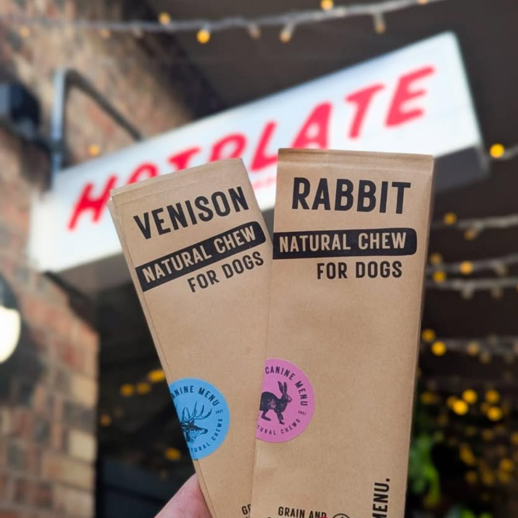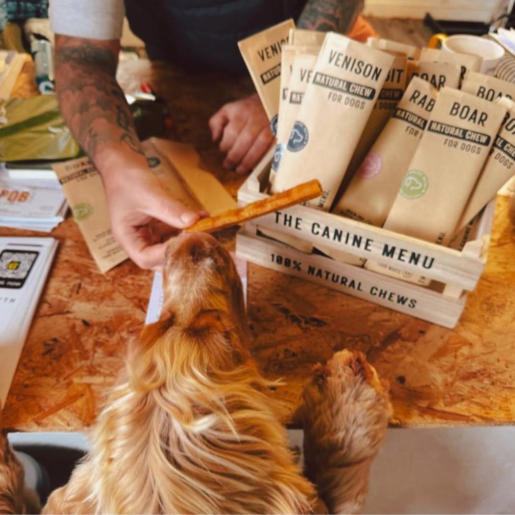 The Canine Menu is opgericht in 2021 toen we kauwsnacks meenamen naar ons favoriete hondvriendelijke café om onze honden bezig te houden. De koekjes achter de bar waren leuk, maar niet meer dan een moment van plezier.We vroegen ons af hoe het zou zijn als het café een echte hondenkaart had met natuurlijke kauwsnacks, die je rechtstreeks aan de bar kon kopen.Blije honden = blije baasjes = langer blijven.